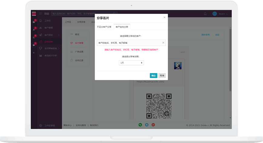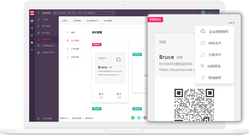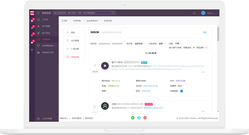 工作区代表一个运营的项目,承载项目的业绩增长功能和运营数据